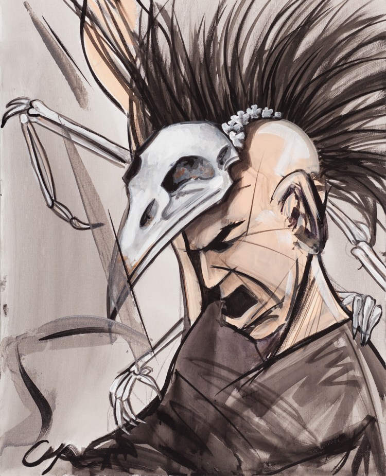 What a catch- 14″x17″-watercolour ink – Published in Subterrain MagazineMandy – Oil – 3′ x3′ – SoldPow Wow – Acrylic – 4′ x 5′- soldHBC 3 point – acrylic on canvas – SOLD