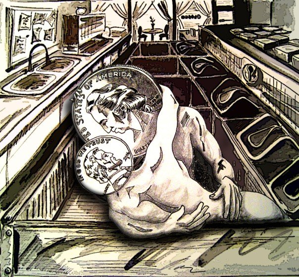 Red Ribbons – acrylic on canvasMoney Shot – 8″x10″ – watercolour and ink – Published in Subterrain Magazine
