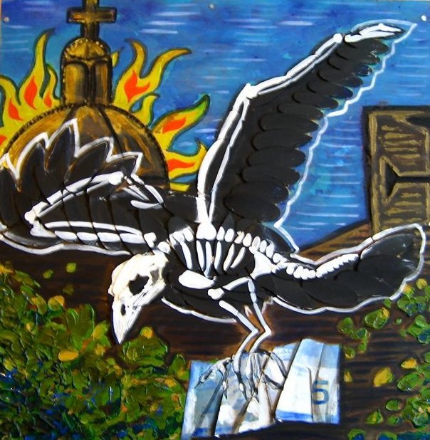 Crow Hawk – mixed media on board – 12″ x 12″ – SOLD