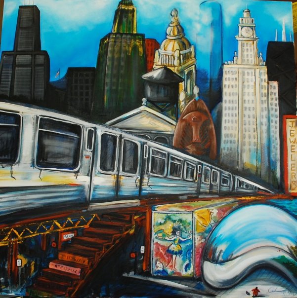 Chicago Collage – acrylic oil on canvas – 3′ x 3′ SOLD