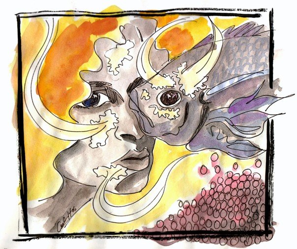 Previous Image Next Image holeinhead Hole In Head – 8″ x 10″- watercolour ink – Published in Subterrain Magazine